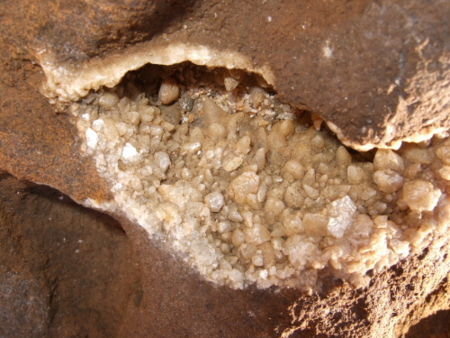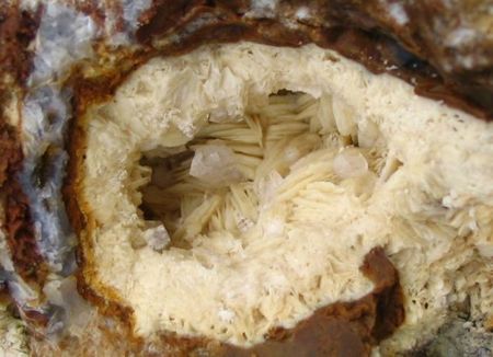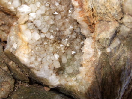 De petites géodes de quartz cristallisé peuvent parfois s'observer :