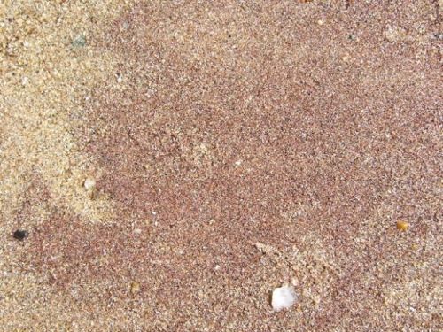 J'oubliais ! Pour les amateurs de sables, outre le sable ordinaire commun sur tout la côte, l'action de différents facteurs (vent, vagues, ruissellement) peut créer à certains endroits des concentrations de sables lourds riches en grenats, magnétite, quartz..... et même des saphirs.