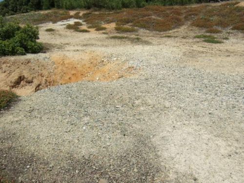 Aussitôt quittés la plage, nous découvrons en haut de falaise les haldes des anciens travaux d'exploitation de la mine de Jard (ou mine Saint-Nicolas).