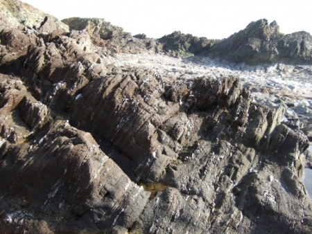 Sur les rochers de l'estran, formés de lias silicifié, la présence de barytine blanchâtre est très nette.
