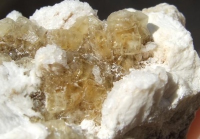 Dans les bancs de lias silicifié, outre la barytine abondante et le quartz fréquent, on peut souvent mettre à jour de petites zones de fluorine (petites géodes ou petits placages). Souvent inclus dans la barytine il arrive qu'on puisse observer la présence de petits cristaux bien formés. Ce sont des cristaux blanchâtres, jaune pâle à jaune clair dont la taille dépasse rarement quelques millimètres.