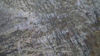 On distingue très bien l'aspect strié du miroir, avec des stries sub-horizontales (ou tectoglyphes).