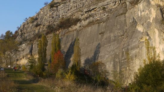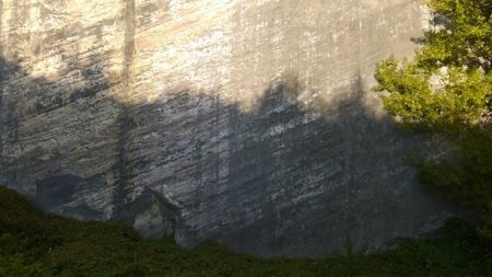 Ce miroir de faille est un des plus beaux et plus grands jamais observé en Europe, avec près de 2000 mètres carrés ! La longueur approximative du site dans sa globalité est de 350 mètres. J'estime la hauteur du miroir en tant que tel à 30 mètres.