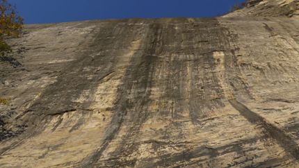 Miroir de faille du décrochement de l'Alpette, au pied des falaises méridionales du Granier, à l'Ouest d'Epernay, en Savoie (73).
