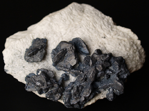 - bournonite : elle peut atteindre d'importantes dimensions, les cristaux de plus ou moins 5 cm sont un classique apprécié pour le site, certains cristaux allant jusqu'à 10 cm, ce qui pour l'espèce est proche du record.