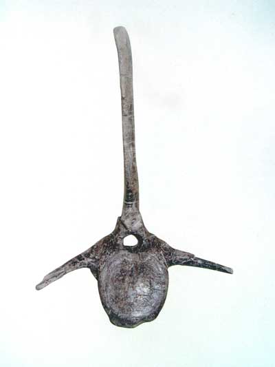 17.2. Vertèbre d’hadrosaure provenant du Maastrichtien supérieur de Lestaillats (Haute-Garonne). Musée des Dinosaures, Espéraza.