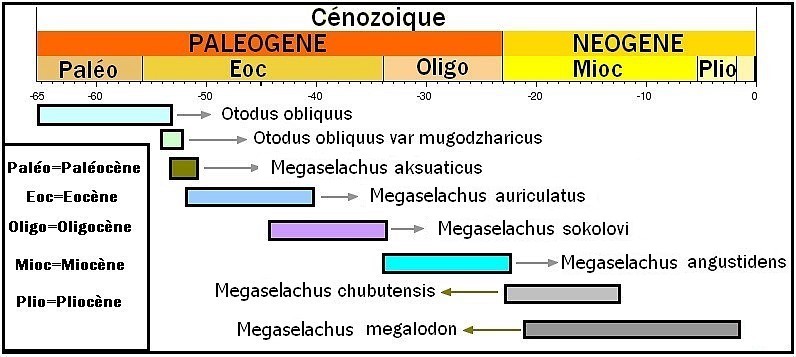 Il fut l’ultime créature d’une lignée qui aurait débuté à l’Yprésien (Éocène inférieur) au moment où certains groupes d’Otodus obliquus auraient évolué successivement pour donner la lignée des Megaselachus, notamment le Mégalodon…