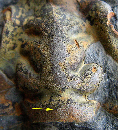 La granulation est générale, fine, avec une accentuation en bordure des sillons glabellaires (voir photos n° 10 & 11).