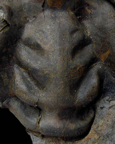 Deux dépressions (fossules antérieures), grossièrement circulaires, sont observables chez tous les spécimens bien conservés avec plus ou moins de netteté. Elles sont localisées de chaque côté du sillon préglabellaire (voir photos n° 12 & 13).