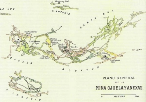 Elle comporte différents chantiers (Cumbres, Esperanza, Ojuela, San Diego, San Judas, San Pointe et Santo Domingo), et plusieurs entrées et puits (Ojuela, Americanna, America Dos, Tiro Norte et Socavón).