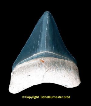 | Ancêtre de la lignée des grands requins Carcharocles, et fort de dents antérieures qui pouvaient atteindre 10 cm voir plus, l’Otodus obliquus, est l'un des plus connus des grands lamnidés, et cela sans doute occasionné par l’exploitation intensive des gisements de phosphates de Khouribga au Maroc. | ||
