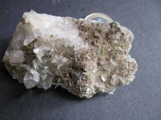 Prehnite (avec quartz et "amiante"), La Piquette deras Lits, Hautes Pyrénées (65). Collection musée ferme de l'orme. |