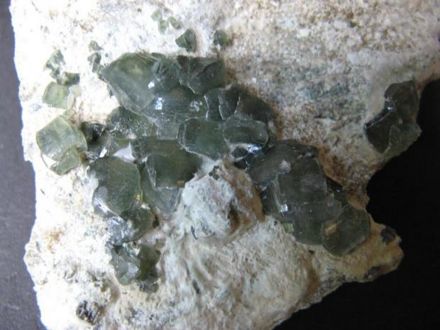 - Conditions de formation et/ou de gisement : La prehnite est un minéral hydrothermal secondaire qui se forme généralement dans des fissures et autres cavités des roches éruptives basiques et schistes cristallins. Elle est fréquemment associée à la calcite et aux zéolites.