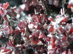 - Couleur : rouge, rouge cinabre, gris rougeâtre. Devient noir mat et opaque sous l'effet de la lumière.