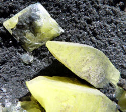 - dimorphe avec la rosickyite, gamma-S, (ex soufre béta) dont la localité type est Havirna près Letovice, Tchéquie.
