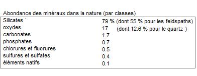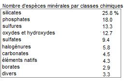 Les minéraux sont classés d'après leurs caractéristiques chimiques et cristallographiques (classification, utilisée depuis le 19ème, dite cristallo-chimique)