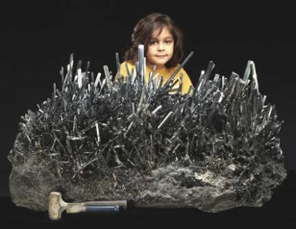 - Échantillons de collection : Les meilleurs cristaux de l’espèce (jusqu’à 600mm de long) ont été découverts à la mine Ichinokawa, Ile de Shikoku, Japon et actuellement à Xikuangshan, Province de Hunan, Chine.
