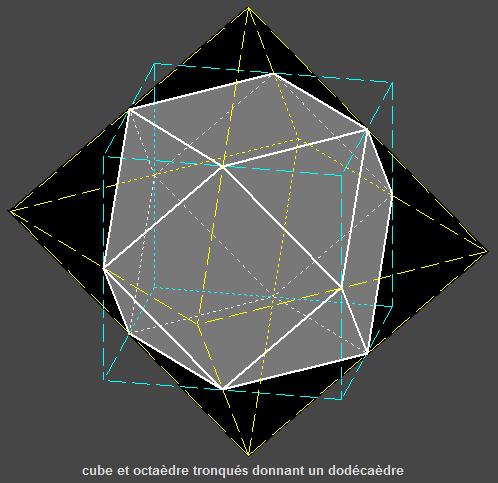 rapport du dodécaèdre avec un cube et un octaèdre tronqués.