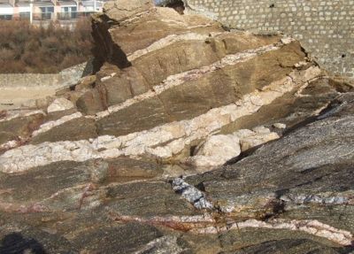 On voit bien que le filon est de nature différente de la roche