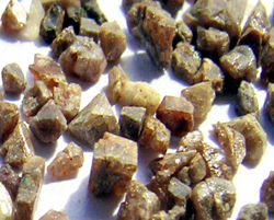 - Utilisations : le zircon est la principale source de zirconium. Utilisé comme gemme depuis l'Antiquité. Fabrication de réfractaires, céramiques, pigments, vernis, abrasifs, fibres. Matière première pour l’obtention du dioxyde de zirconium. La décroissance radioactive du zircon permet de dater les roches.